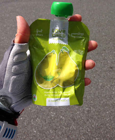 Third Time Lucky. It took three rides on the bike before I managed near blood sugar perfection. All the rides began around the same time, a few hours after breakfast, but varied in distance and length. The first ride back, I was chasing lows the entire time, even before we began, my blood sugars were dropping. Ugh. About 30 minutes before the ride, I inhaled half a peanut butter and jam sandwich on whole grain bread, around 25g carbs, no insulin. My blood sugars were 7.6 before the sandwich, and 20 minutes later were down to 6.1. I dropped my continuous basal insulin down 70 per cent. An hour into the ride, my blood sugars were at 4.5. I ate a savoury salted sweet potato Clif gel, which was all sorts of disgusting, had 2 dried apricots, and turned my basal off completely. At lunch, an hour later, they were